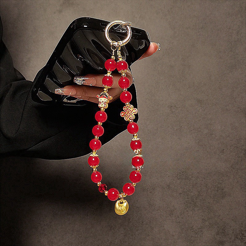 Vintage Imperial Red Beaded Phone Chain.