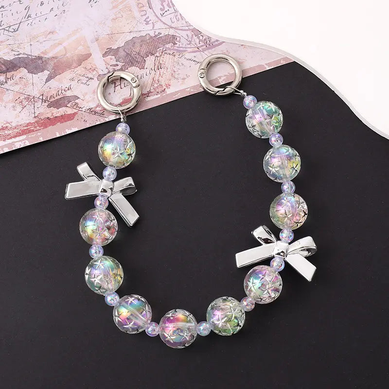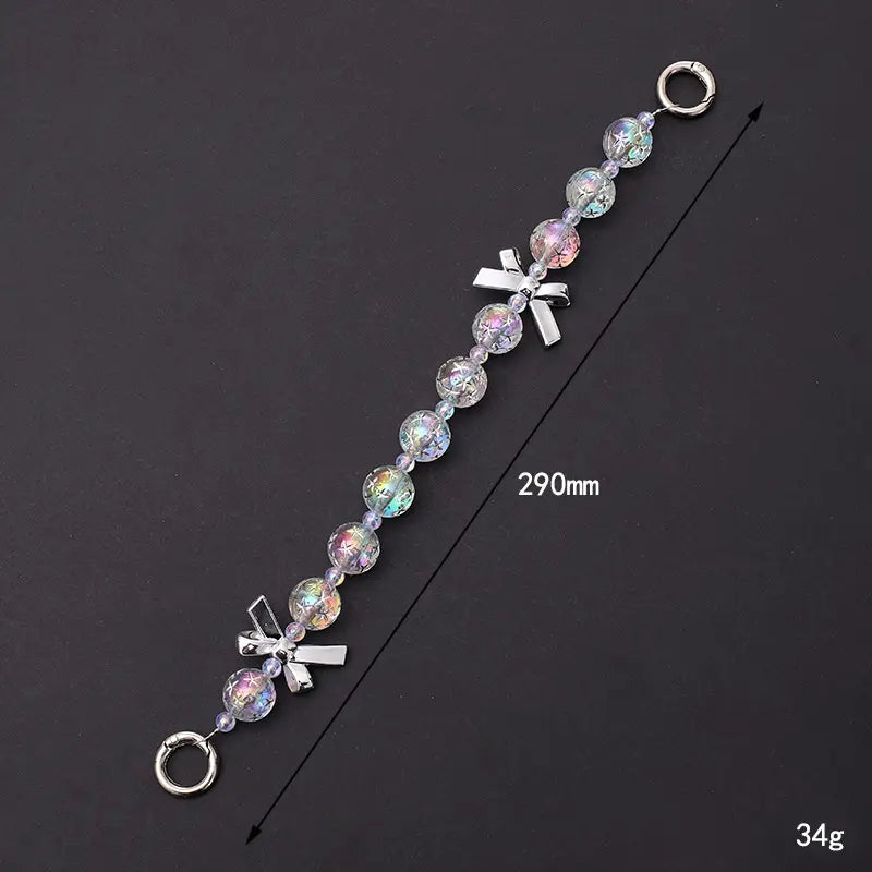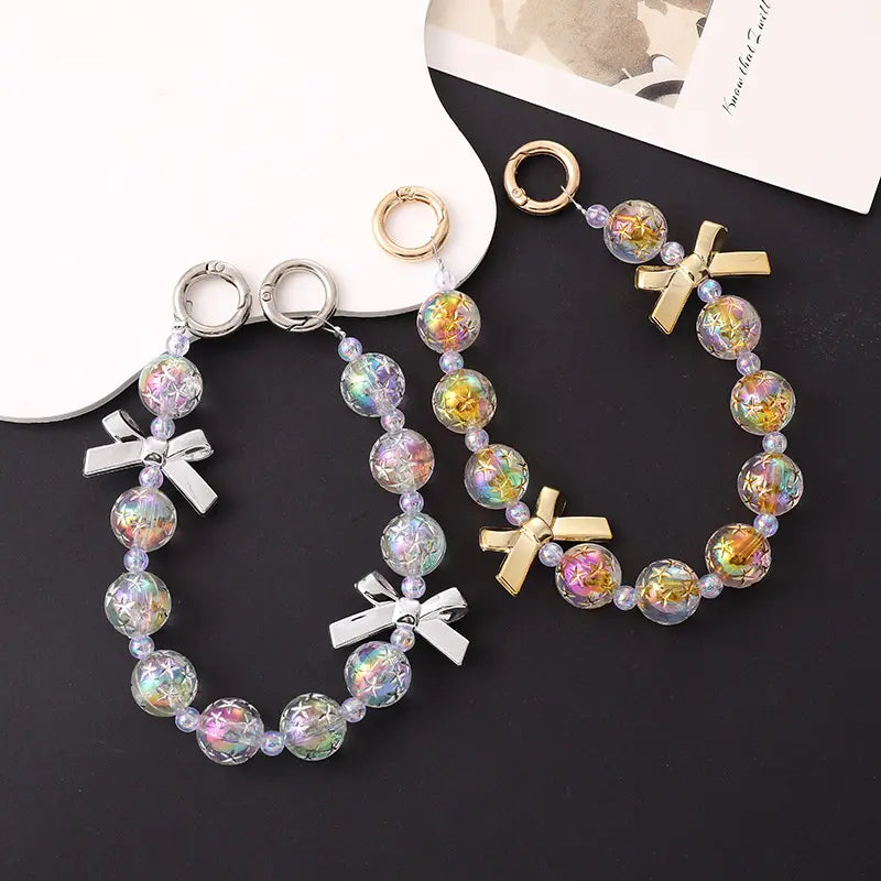 Stylish Gold and Silver Bow Wristlet Keychain with Beaded Detail
